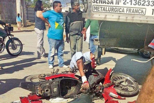 Por causas que se tratan de establecer un joven de 24 años, con domicilio en el barrio Bosco II- que circulaba en su motocicleta Brava 110, chocó contra un camión cargado con lácteos.