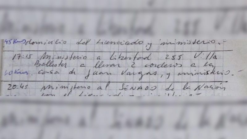 El ex militar anotaba con estricta obsesión tanto las actividades como las distancias recorridas en cada uno de los viajes que realizaba. En agosto de 2005 detalló que fue "del ministerio al vivero Faitful, a comprar revitalizador de planta para el licenciado (a Once)". Dos meses después, haría con el funcionario un "recorrido por la zona de Barrio Norte y Palermo Chico tomando direcciones de departamentos en alquiler" para luego regresar al Ministerio. Fueron 22 kilómetros.