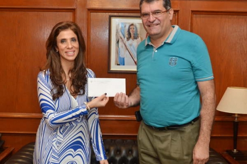 También, en la reunión, la titular del Ejecutivo provincial efectivizó la entrega de un aporte que fue recibido por el titular de la asociación, Roberto Danna.