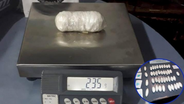 Realizadas las pruebas de campo correspondientes, la PSA descubrió que tenía 816 gramos de clorhidrato de cocaína acondicionados en 94 cápsulas que estaban distribuidas en el equipaje de mano, disimuladas en su ropa interior e introducidas en su vagina.
