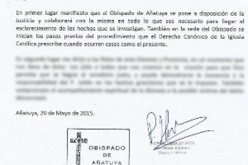 En ese sentido, González Cazón indicó que “el obispado de Añatuya se pone a diposición de la Justicia y colaborará con la misma en todo lo que sea necesario para llegar al esclarecimiento de los hechos que se investigan”.
