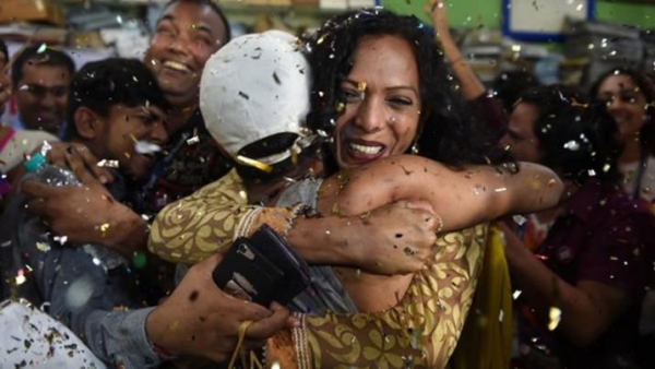 Imágenes difundidas por la televisión india muestran a militantes de la causa homosexual llorando de alegría y abrazándose, tras la lectura de la sentencia.
