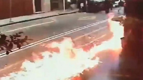 En las imágenes difundidas sobre este ataque se puede ver cómo los atacantes tiran los dispositivos al edificio, aun cuando había un custodio en la puerta, quien primero atinó a correr a los hombres y luego salió de escena para resguardarse. En tanto, los manifestantes escaparon corriendo.