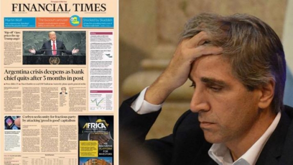 "El presidente del Banco Central argentino renunció después estar tres meses en el cargo, provocó la caída del peso en un 5% y perjudicó los intentos de Mauricio Macri de restaurar la confianza de los inversores en medio de la crisis cambiaria", dice el primer párrafo de la nota, que lleva las firmas de Benedict Mander, corresponsal en Buenos Aires, y Pan Kwan Yuk y Colby Smith, de Nueva York.