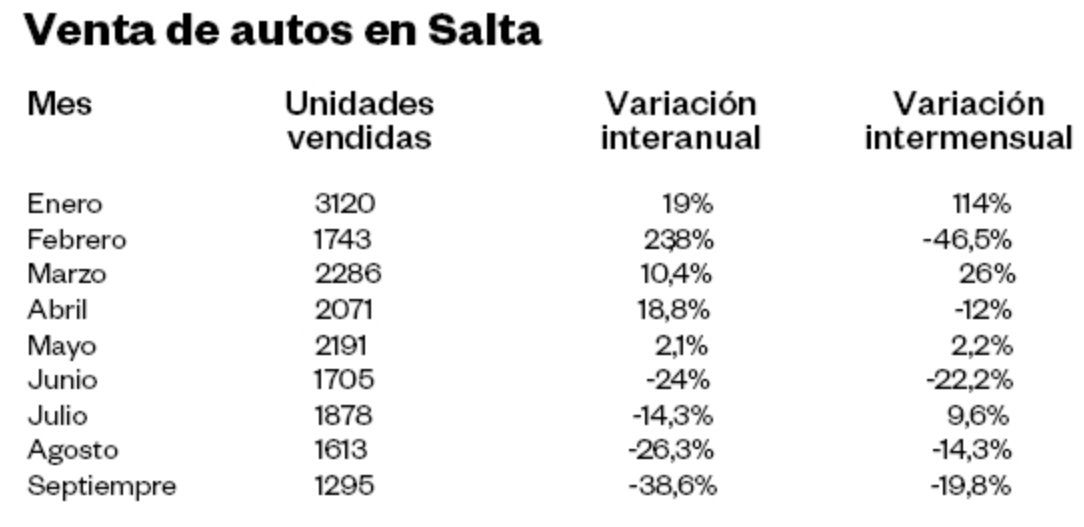 La venta de planes de ahorro se desplomó por lo menos un 50 por ciento en Salta como consecuencia de la última devaluación de mediados de este año. La caída acompaña a la tendencia en general para el sector que, de esperar un año récord con un millón de autos vendidos en todo el país, recorta semana a semana esas previsiones a la vez que los precios de las unidades se siguen disparando, producto de la inestabilidad económica.