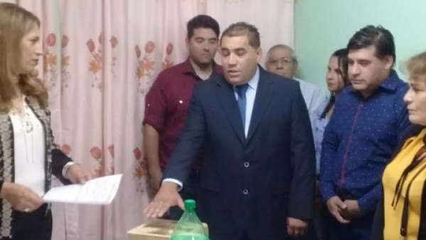 PAMPA DE LOS GUANACOS, Copo (C) El Concejo Deliberante realizó la sesión especial en la cual la ex intendenta y ahora presidenta del cuerpo Prof. Viviana Campos tomó juramento a su esposo César Gustavo Andrada como intendente hasta el año 2022.