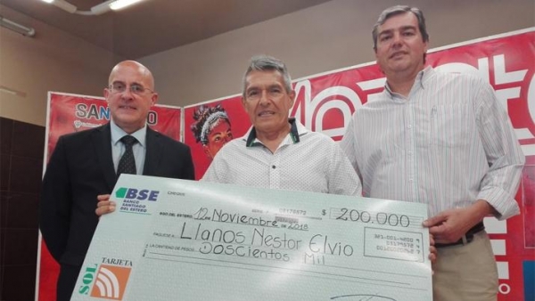Néstor recibió de manos de Roberto King, representante de Tarjeta Sol, y de Franco Parisini, gerente de EL LIBERAL, el cheque con el premio. El escribano Luis Karam (h) estuvo presente y fue quien certificó la entrega.