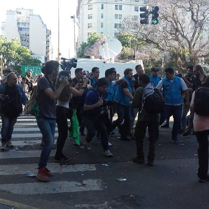 No obstante, se vivieron momentos de tensión cuando un grupo de efectivos de la Policía de la Ciudad, que conformaba un escudo humano para custodiar el vallado sobre la Avenida Rivadavia, rompió filas para capturar y llevarse detenido a un joven manifestante que estaba provocando disturbios y que no respondería a ninguna organización política, social ni sindical.