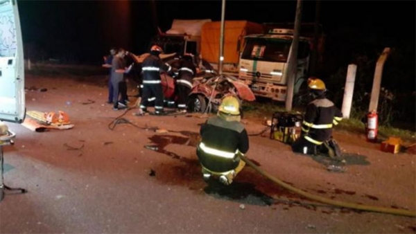En el auto, en el que viajaban cuatro personas, se "descontroló" y colisionó al camión, indicó el bombero a Mitre Córdoba.