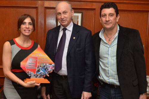 En la ocasión, el intendente Garavaglia le obsequió a la gobernadora una plaqueta que fue enviada por el Moto Club en agradecimiento al aporte que hizo para la organización de la quinta fecha de motociclismo en ovalo. "Le queremos agradecer porque este evento ha sido muy exitoso y convocó a mucha gente", resaltó.
