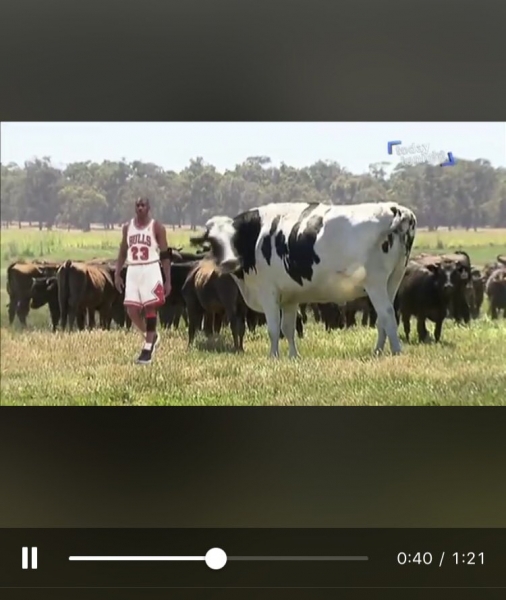 A sus siete años, con sus 1,94 metros de altura, Knickers está considerado el buey más alto de Australia y uno de los mayores del mundo (según el libro Guinness, el récord mundial lo ostenta el italiano Bellino). Para tener la misma altura que la exestrella de NBA Michael Jordan (que también era un 'bovino', de Chicago Bulls) le faltan solo unos cuatro centímetros.