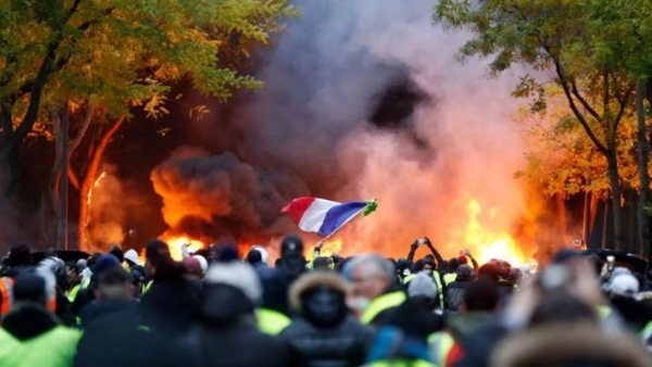 La protesta desembocó el sábado en violentas manifestaciones en París y otras ciudades con incendios de automóviles, locales comerciales, un peaje en una autopista y la sede de una prefectura.
