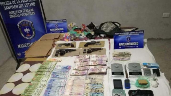 En otra casa encontraron dos balanzas, dos armas de fuego, tres paquetes de cocaína con un peso de 1 kg, $ 113.500, dos teléfonos celulares, dos motos y un automóvil.