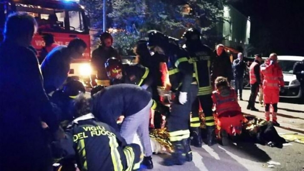 Seis muertos y más de 100 heridos por una estampida en la salida de un club nocturno en Italia https://bit.ly/2L2J3SE