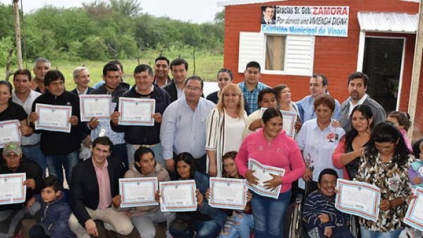 En el avance del programa de viviendas sociales, 24 familias de Vinará, departamento Río Hondo, accedieron al techo propio a través de un trabajo articulado entre el gobierno provincial y la Comisión Municipal de esta localidad, a cargo de Adriana Décima y la ONG Virgen del Valle, a cargo de Olga Salas que llevaron adelante la construcción de las casas.