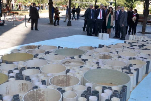 Durante las actividades desarrolladas ayer por la gobernadora Dra. Claudia de Zamora y el ministro De Vido, junto a sus comitivas recorrieron el sector de la plaza Libertad en el que se encuentra el camión del Ente Nacional de Obras Hídricas y Saneamiento (Enhosa) y de la Comisión Nacional de Energía Atómica (Cnea).