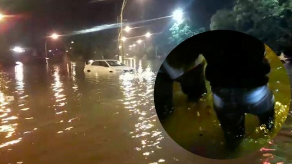 Tiempo de lectura: 42 segundosTranseúntes grabaron el momento en que debían cruzar las calles: el agua les llegaba hasta las rodillas. En el video también se ve como un auto quedó abandonado en medio de la calzada.