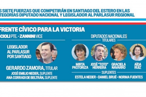 En un año donde se elige al nuevo Gobierno nacional, los santiagueños tendrán que concurrir nuevamente a las urnas, primero el 9 de agosto para las Primarias, Abiertas, Simultáneas y Obligatorias (Paso), y luego el 25 de octubre, para las generales. En el caso de Santiago del Estero, se votarán cuatro cargos, presidente y vice, legisladores al Parlasur por Distrito Único (19 parlamentarios); legislador al Parlasur por Santiago (uno) y cuatro diputados nacionales. Los legisladores al Parlasur por Distrito Único, serán en total 19 y este cuerpo de la boleta se votará en todos los 24 distritos del país (lista nacional), al igual que las fórmulas presidenciales, a diferencia del legislador al Parlasur regional, que se elegirá únicamente en cada una de las circunscripciones. Por ejemplo, la lista de legisladores al Parlasur por Distrito Único del Frente para la Victoria, es encabezada por el ex canciller Jorge Taiana. Este cuerpo de la boleta acompañará a la fórmula presidencial Scioli-Zannini; y luego seguirán los cuerpos del Frente Cívico para la Victoria con la categoría a legislador al Parlasur por Santiago, con Zamora como titular; y la de diputados nacionales. Los legisladores al Parlasur por Distrito Único y en este caso el de Santiago, ambos asumirán sus cargos recién en 2020, en el Parlamento que representa a los países que integran el Mercosur. En la provincia serán siete las fuerzas que competirán por los cargos a diputados nacionales y legislador al Parlasur por Santiago. El oficialismo con su referente, el senador Gerardo Zamora, buscará nuevamente ganar los comicios y mantener las cuatro bancas en la Cámara baja y consolidar un bloque de siete legisladores. Zamora se puso al frente de la campaña e irá como candidato a legislador del Parlasur en la lista del Frente Cívico para la Victoria. El presidente provisional del Senado presentó este viernes a los candidato y remarcó que la propuesta "ratifica el rumbo de crecimiento" que tuvo Santiago del Estero. También remarcó que en los comicios se enfrentarán "dos modelos de país opuestos, nosotros nos quedamos con Daniel Scioli y Carlos Zannini", remarcó sobre la fórmula del Frente para la Victoria. Además, enfatizó que "si tenemos el respaldo del pueblo en las urnas, trabajaremos por los intereses de todos los santiagueños". Las otras seis fuerzas las representan el PRO, con Rodrigo Posse como primer candidato a diputado nacional; el massismo con el intendente de La Banda, Pablo Mirolo, encabezando la lista de diputados nacionales titulares; Libres del Sur, MST-Nueva Izquierda, UCR e Izquierda por una Opción Socialista. Publicado el 21/06/2015