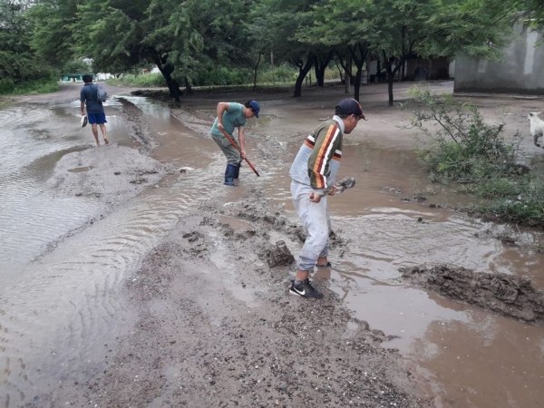 En la localidad de La Cañada, ubicada en el departamento Figueroa, continúan trabajando en el desagote de sectores que se inundaron debido a las fuertes lluvias caídas durante toda la jornada del jueves.