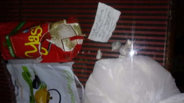 La vianda constaba de un paquete de yerba, otro de azúcar, seis bollos de pan. Grande fue la sorpresa de los uniformados al vaciar el paquete de yerba que en su interior había envoltorios que tenían marihuana, tres pastillas de color blanca, y un papelito que decía: "Una para parra con vos, dos pasta, otro para mi cumpa del calabozo".