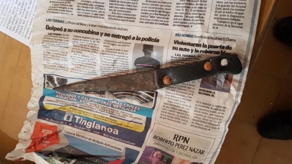 Tras ser trasladado al hospital Regional, la policía inició con la búsqueda del agresor, que fue ubicado a los minutos. Entre sus prendas de vestir escondía un cuchillo, de 20 centímetros de largo, con el cual había herido a su rival.