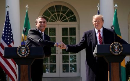 En rueda de prensa conjunta en la Casa Blanca, Donald Trump sostuvo que podría designar a Brasil como “aliado no OTAN” y que posiblemente respaldaría una campaña para que ese país pueda ser un aliado de la alianza atlántica, categoría a la que el año pasado accedió Colombia. “Vamos a analizar esto muy seriamente en términos de, ya sea la OTAN o algo que tenga que ver con la alianza”, dijo Trump junto a Bolsonaro.