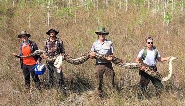 La serpiente es la pitón más grande que se haya capturado en la Reserva Nacional Big Cypress, una extensión de 295.000 hectáreas de pantanos al oeste de Miami en el sur de la Florida, según un comunicado publicado en la página de Facebook de la reserva.