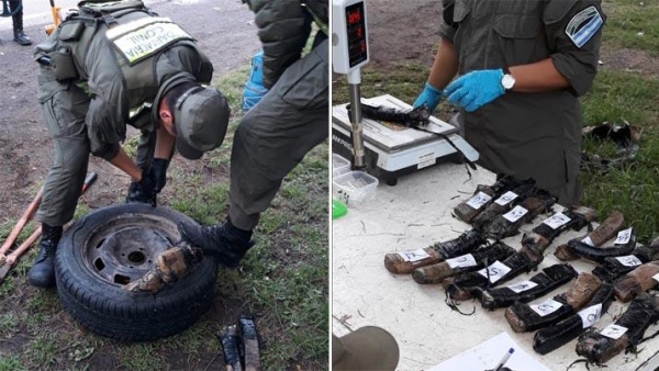 Al llevar a cabo la inspección del rodado, los funcionarios detectaron que el neumático de auxilio tenía poca presión, por lo que se procedió a realizar un control más exhaustivo y desarmar el mismo, hallando un total de 16 paquetes de diferentes tamaños. Los mismos fueron sometidos a prueba de campo y se confirmó que se trataba de marihuana, con un total de 3 kilos 395 gramos que fueron incautados de inmediato.