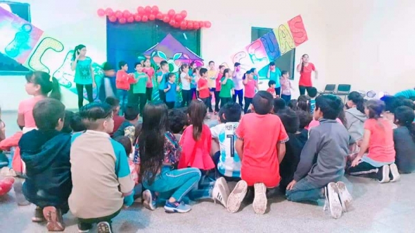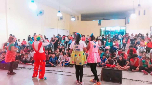 Tiempo de lectura: 14 segundosLa Dirección de Cultura de la Municipalidad de la ciudad de Campo Gallo organizó un evento de vísperas de Pascuas para todas las familias. Hubo payasos, musica, baile, feria y entrega de golosinas y dulces.