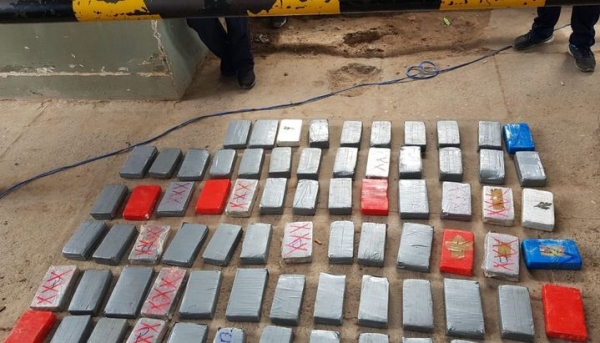 Tras ser secuestrar los sospechosos ladrillos embalados con cinta gris, roja y azul, los efectivos realizaron la prueba de narcotest y dio positivo para clorhidrato de cocaína.