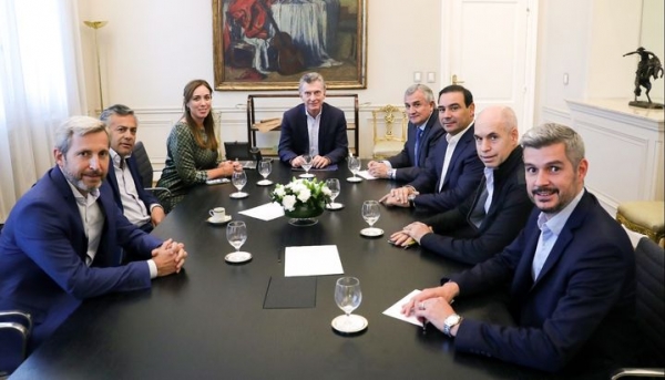 El presidente Mauricio Macri recibió esta tarde a la mesa chica de gobernadores oficialistas en su despacho de la Casa Rosada para analizar la coyuntura política y económica del país, con miras a las elecciones presidenciales.