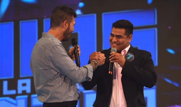 Al finalizar el programa descendió del escenario y se mezcló con el público presente quienes pudieron saludarlo y tomarse fotografías.