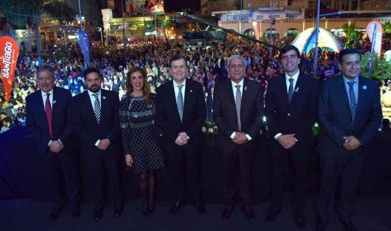 Tras la entonación del Himno Nacional Argentino, se realizó la entrega del decreto de “Huésped de honor” por parte del intendente Jorge Mukdise al gobernador de la provincia Dr. Gerardo Zamora.
