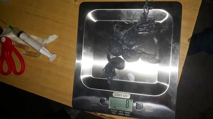 Ante las fuertes sospechas que podría tratarse de alguna droga, se realizó el test en la sustancia, la cual arrojo resultados positivos ante la presencia de marihuana, en un pesaje total de 5 gramos, también tenía en su poder la suma de $585 y un blíster de pastillas con un ansiolítico.