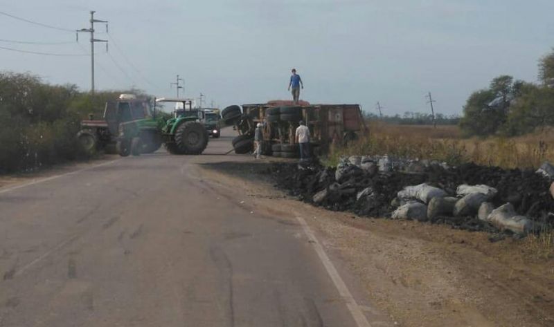 BANDERA, Belgrano (C). Ayer a las 7, a unos 20 kilómetros de esta ciudad sobre la Ruta 21, se registró el vuelco de un camión, Scania modelo R112H, con chasis, que transportaba una carga de carbón.