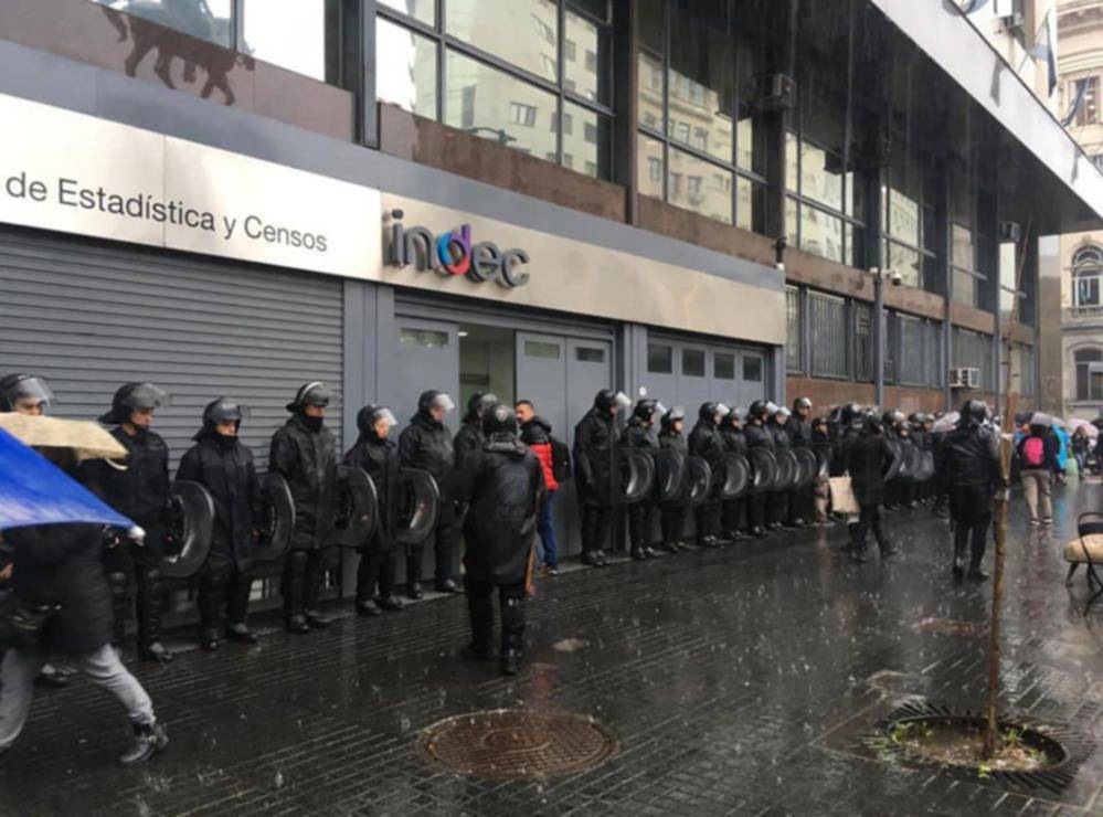 La cifra se dio a conocer en un edificio militarizado ya que trabajadores del Indec e integrantes de 20 organizaciones sociales protestaron en la sede del organismo "contra las políticas de hambre y desocupación del Gobierno nacional". Los manifestantes fueron reprimidos por Infantería y hay una persona detenida. Se trata de Nicolás Oliva, del Movimiento Teresa Rodríguez (MTR).