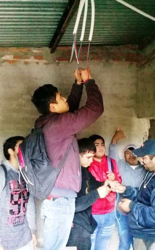 De la mano del Prof. Enrique Álvarez pudieron llevar a cabo prácticas previas a las colocaciones de las estructuras de Durlock que tendra la casa, y de esta manera continuar con el Convenio de la Escuela de Artes y Oficios de la UNSE.