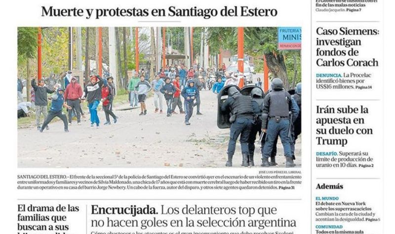 Por su parte, La Voz del Interior, escribió: "Santiago del Estero: murió una joven baleada en un confuso operativo y separaron a 8 policías".