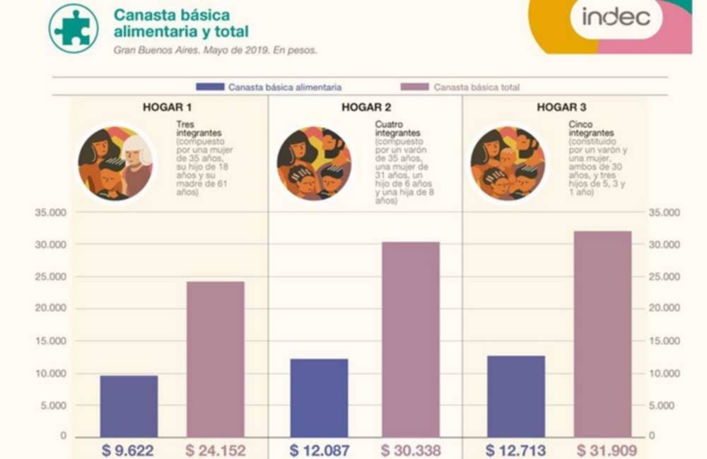 El precio de la Canasta Básica Total aumentó 2,9% en mayo, al llegar a $ 30.337,84, ingreso que necesitó una pareja con dos hijos para comprar comida, ropa y pagar algunos servicios, y no caer por debajo de la línea de la pobreza, informó hoy el Instituto Nacional de Estadística y Censos (Indec).
