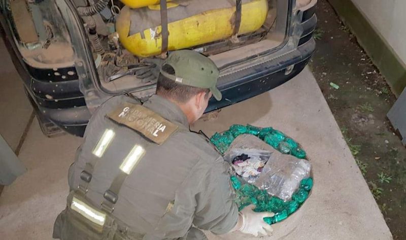 Durante la inspección, los gendarmes detectaron debajo del asiento trasero un doble fondo que ocultaba paquetes con hojas de coca. Con conocimiento del magistrado interviniente, el auto fue trasladado a la sede de la Unidad para intensificar la requisa, en ese momento la patrulla de la fuerza observó en cercanías a la ciudad de Quimilí dos vehículos similares.