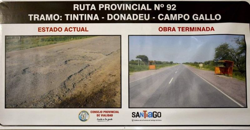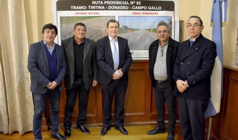 Los intendentes de: Tintina (departamento Moreno), Luis González y de Campo Gallo (departamento Alberdi), José Vittar, acompañado por el ministro de Obras y Servicios Públicos de la Provincia, Arq. Daniel Brué y titular del Consejo Provincial de Vialidad, Ing. José Alfano, compartieron con el Gobernador el anuncio de esta trascendental obra de 58 km. El objetivo fundamental es mejorar las condiciones de servicios de este eje vial, que vincula a las poblaciones de la zona central este de la provincia con la capital provincial.