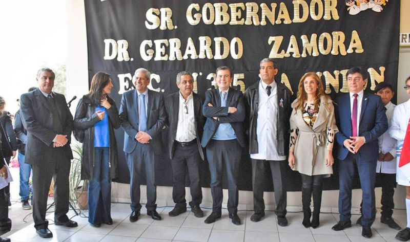 La refacción de la Escuela Nº 432 “Elena de Corradi” y el nuevo edificio del anexo Jardín de Infantes Nº 728 de El Milagro y entregó vivienda social a familia del paraje El Traslado. El primer mandatario estuvo acompañado por el vicegobernador, José Emilio Neder, ex gobernadora y actual diputada nacional, Dra. Claudia de Zamora, ministra de Educación, Ciencia y Tecnología, Dra. Mariela Nassif; ministro de Obras y Servicios Públicos, Arq. Daniel Brué, subsecretario de Promoción Humana, Arq. Ernesto Fernández e intendente de Campo Gallo, José Vittar.
