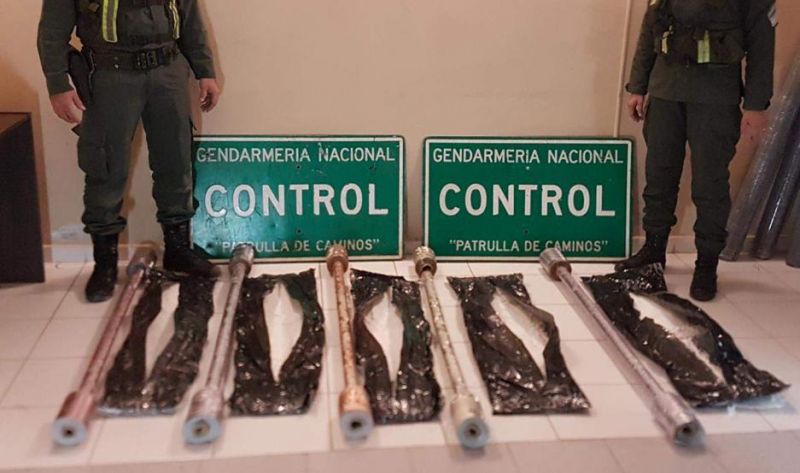 Al momento de la inspección, los gendarmes notaron un peso poco habitual en cinco rollos de tela plástica, al desarmar los mismos extrajeron dentro de los tubos de PVC bolsas con una sustancia blancuzca que tras ser sometida a las pertinentes pruebas de orientación arrojaron resultado positivo para cocaína.