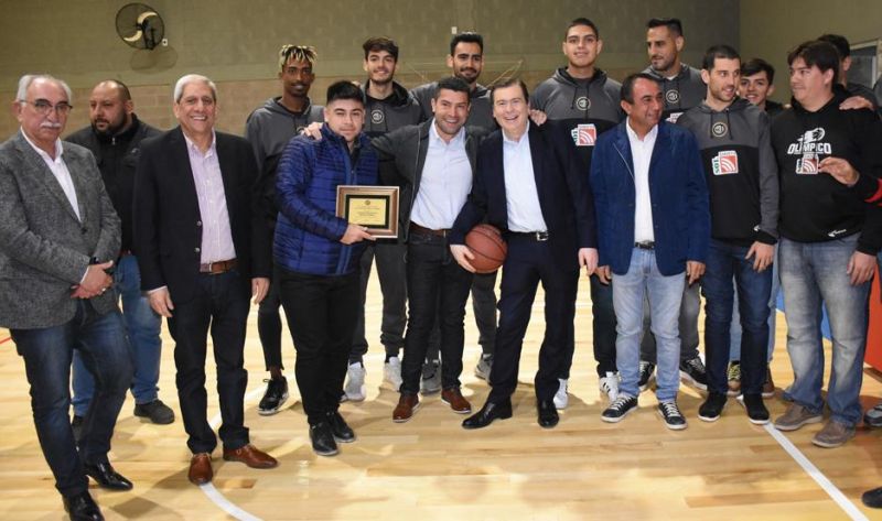 Durante el recorrido por las modernas instalaciones, la comitiva oficial se encontró con el equipo profesional de Olímpico de la ciudad de La Banda, encabezada por el presidente de la institución Dra. Oscar Ledesma Abdala y el director técnico, Leonardo Gutiérrez, que realiza la pretemporada de la Liga Nacional de Básquetbol en el lugar.
