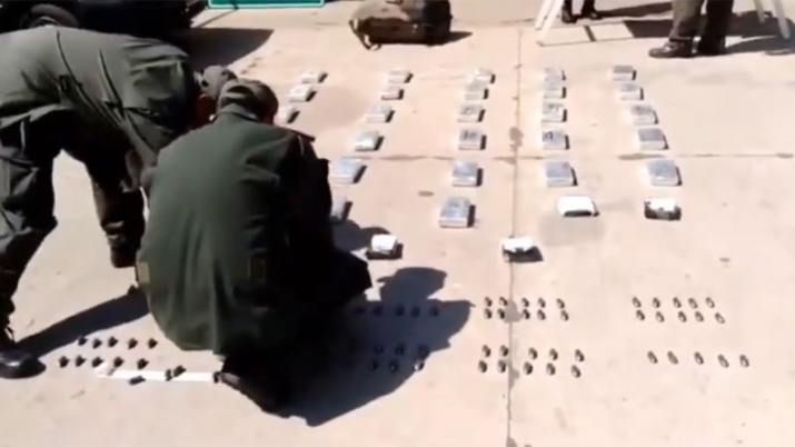 Como resultado, se decomisaron 32 ladrillos con envoltorios, y 4 paquetes irregulares de látex y nylon con 97 envoltorios de pequeñas dimensiones con un peso total de 32 kilos, 734 gramos de cocaína.