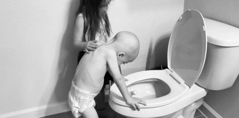 La imagen dio la vuelta al mundo a través de las redes sociales. Un niño está parado frente a un inodoro, apenas después de vomitar, y su hermanita lo consuela con su pequeña mano sobre su espalda. Una muestra de amor puro que conmovió a todos.