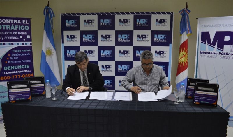 Este martes en el SUM del MPF el Fiscal General Luis Alberto de la Rúa y el intendente de la Ciudad de Campo Gallo, Sr. Joselo Vittar firmaron un convenio de cooperación dentro del marco regulatorio de la Ley provincial Nº 7.252 de desfederalización parcial de la competencia penal en materia de Estupefacientes, en donde dispone en su art. 34 bis de la Ley N° 23.737: “que las personas que denuncien cualquier delito previsto en la mencionada ley se mantendrán en el anonimato”.