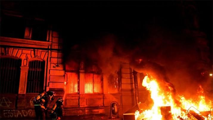 En la noche del sábado, los protestantes rompieron la enorme puerta del antiguo edificio, ubicado en pleno centro del puerto turístico de Valparaíso (120 km al oeste de Santiago) y quemaron el interior, contó al canal 13 el guardia de seguridad del lugar. Al percatarse del hecho alertó a los bomberos que lograron apagar las llamas, dijo.