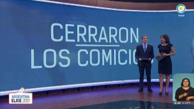 “Cerró la votación para presidente del año 2019, en horas nada más sabremos quién va gobernar el país, la Argentina, en los próximos cuatro años”, anunciaron los periodistas Pablo Duggan y Lucila Trujillo en C5N a las 18, antes de ir al móvil en el centro de cómputos.