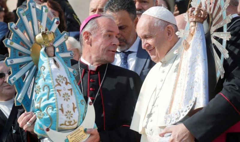 La devolución se concretó durante la audiencia pública que se realiza todos los miércoles en la plaza del Vaticano, encabezada por Francisco, quien bendijo la imagen.
